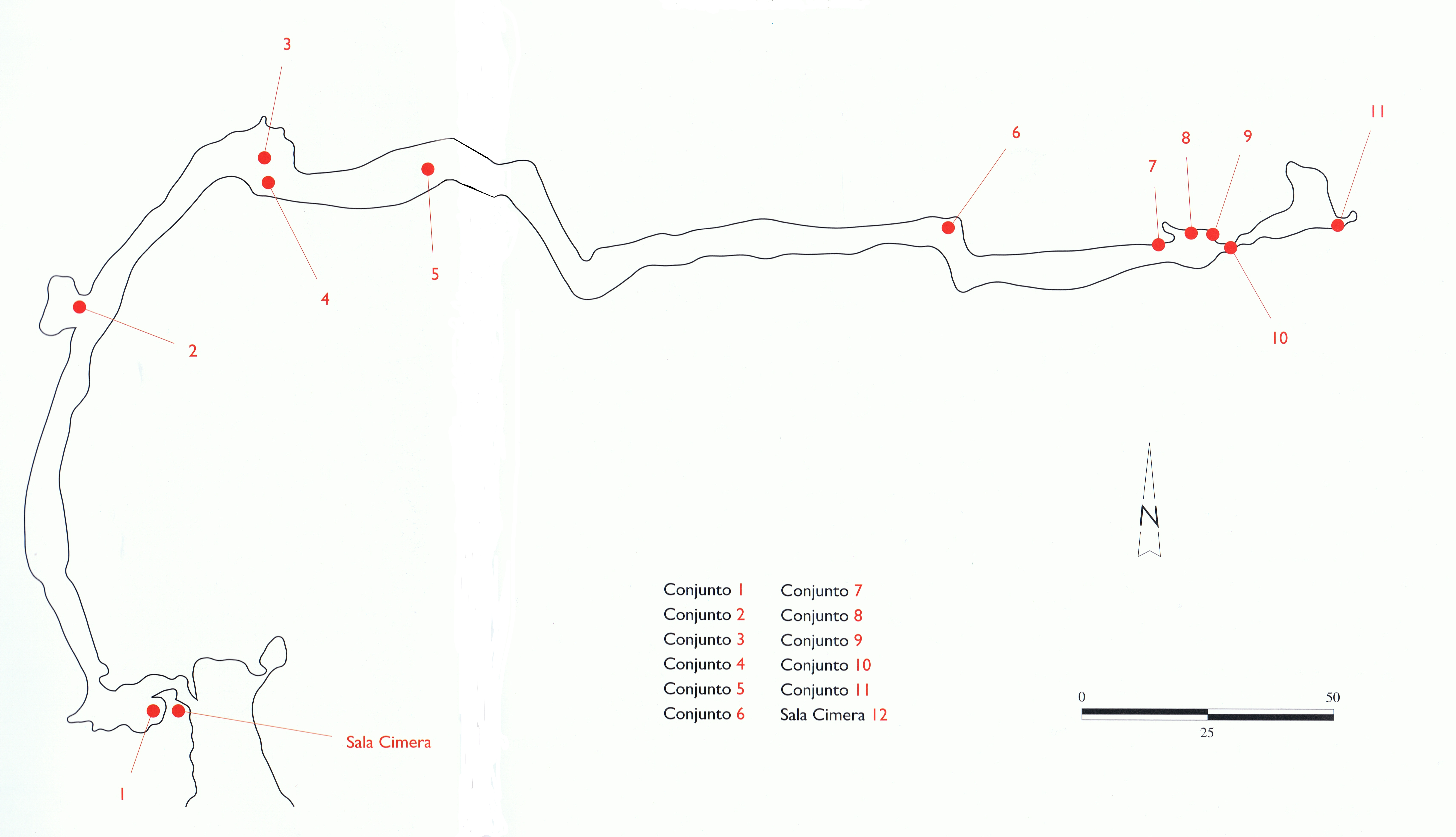 Sin embargo sí hay que reconocer que al igual que en la vecina cueva de Tito Bustillo, toda la galería fue explorada y grafíada con marcas rojas de principio a fin, incluso en la sala de más difícil acceso, siendo significativo que en el punto de comunicación entre ambas cavidades, dejasen plasmadas las más seguras representaciones zoomorfas de toda la cueva.