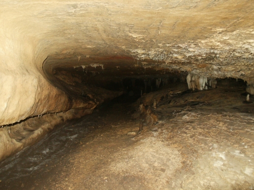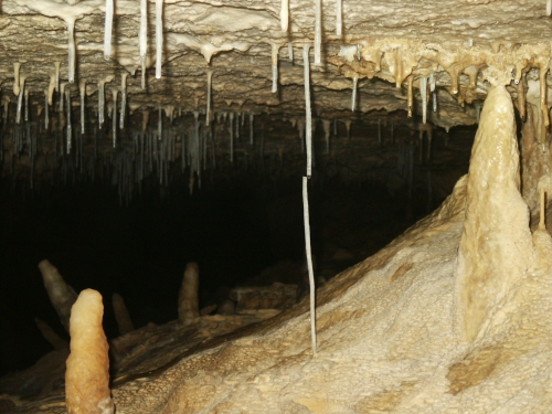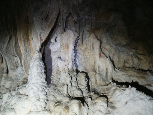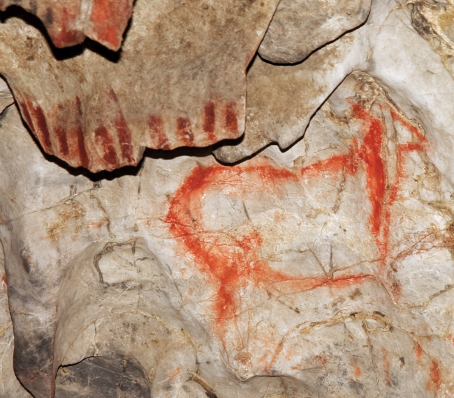 Siguiendo hacia el oeste, se conserva una de las figuras más conocidas de la cueva, la representación del mamut clásico, pintada en rojo y acompañada por un par de haces de líneas paralelas del mismo color, de los cuales sólo uno de ellos se observa con claridad.