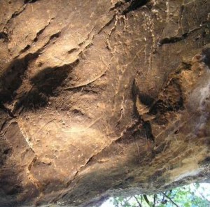 Cierva grabada en Cueva Pequeña, dentro del conjunto de abrigos con arte rupestre documentados en la sierra de Los Collaos, en el valle del Trubia. Situada a dos metros del suelo, responde al convencionalismo característico de las representaciones de cierva en la cuenca del Nalón. Combina el grabado de surco profundo con trazos más tenues, aprovechando las formas naturales de la pared para sugerir la grupa. La cabeza se encuentra ligeramente erguida. Se enmarca dentro del llamado segundo horizonte gráfico del Nalón, que se iniciaría a lo largo del gravetiense, encontrando abundantes paralelos en sitios como La Lluera, Santo Adriano, La Viña o Entrefoces